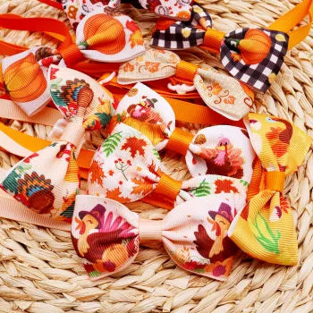 50PCS Fall Thanksgiving Dog Bow Ties - Autumn Maple Leaf Collar Set for Pets