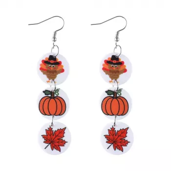 Autumn Pumpkin & Maple Leaf Triple Pendant Earrings