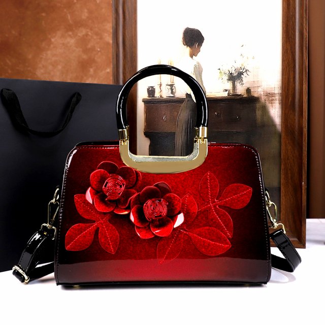 What sets this bag apart is its elegant floral design, which creates a statement wherever you go. The rose flower decoration gives it a sophisticated touch, making it an ideal choice for women who want a balance between fashion and practicality. The high-quality patent leather ensures the bag has a shiny, sleek finish that remains stylish year-round.