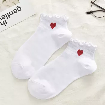 Women’s Cute Crimped Ankle Socks with Stripes, Dots & Hearts